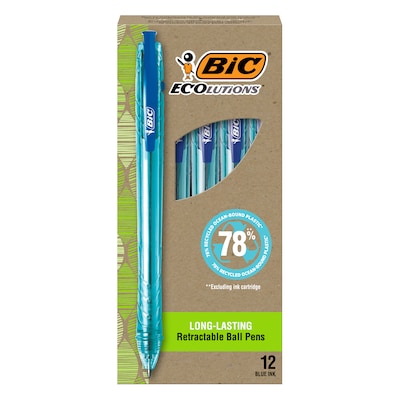 - One package of bulk pens contains 12 BIC Ecolutions Ocean Bound Ball Pens and each pen is made from 78% ocean-bound recycled plastic*