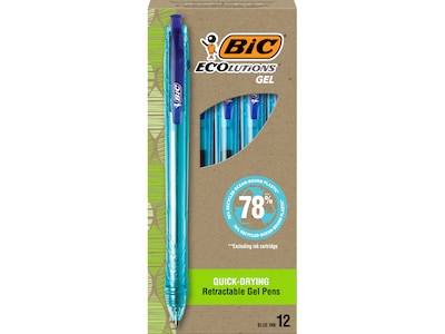 BIC ECOlutions Retractable Gel Pen, Medium Point, 1.0 mm, Blue Ink, 12/Pack (RGLE11-BLU)