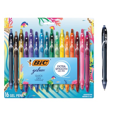 - One 16-count pack of BIC Gel-ocity Quick Dry Colorful Gel Pens.