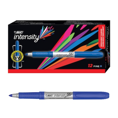 BIC Intensity Permanent Markers, Fine Tip, Blue, 12/Pack (GPM11BE)