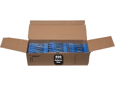 BIC Round Stic Xtra Life Ballpoint Pen, Medium Point, 1.0mm, Blue Ink, 500/Pack (GSM500E-BLU)