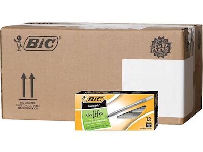BIC Round Stic Xtra Life Ballpoint Pens, Medium Point, Black Ink, 432/Carton (GSM11BLKCT)
