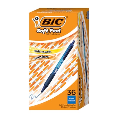 BIC Soft Feel Retractable Ballpoint Pens, Medium Point, 1.0mm, Blue Ink, 36/Pack (SCSM361BLU)