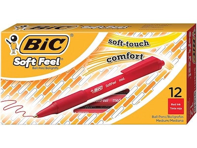 BIC Soft Feel Retractable Ballpoint Pens, Medium Point, Red Ink, 12/Pack (837399)
