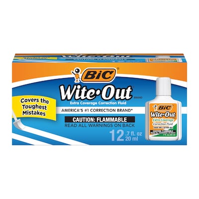 BIC Wite-Out Brand Extra Coverage Correction Fluid covers even the toughest mistakes, so you can keep your school and work documents accurate and professional-looking.