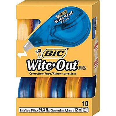 BIC Wite-Out EZ Correct Correction Tape, White, 10/Pack (WOTAP10)