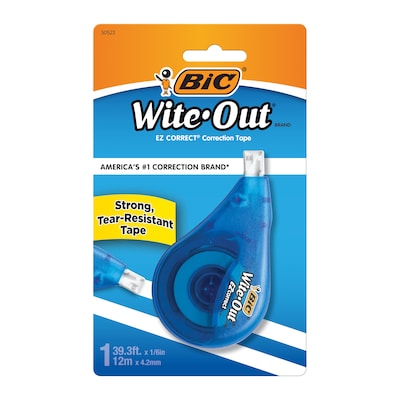 This tear-resistant, film-based BIC Wite-Out Brand Correction Tape comes in a tape dispenser that offers maximum comfort and control, so you can easily and accurately correct mistakes. The tear resistance offers tidy, inconspicuous corrections that last. Similar to our correction pen, the correction tape requires no dry time and won’t bleed or drip, so you can instantly write or type your corrections over it. A translucent body lets you see exactly how much BIC correction tape remains and a self-winding wheel lets you easily rewind the correction tape should it become loose. If you’re looking for reliable office or school supplies for lefties and righties, look no further than this Wite-Out Brand correction tape. From America’s No. 1 correction brand*, choose BIC Wite-Out Brand EZ Correct Correction Tape for a high-quality, safe and affordable product you can trust.