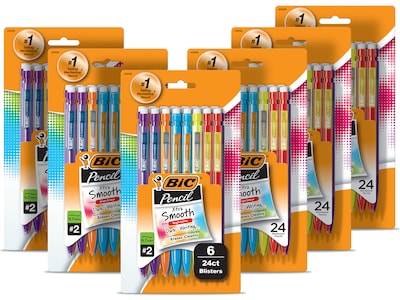 Experience smooth, dark writing with the BIC Xtra-Smooth Bright Edition No. 2 mechanical pencils with erasers. These 0.7mm mechanical pencils have a medium point that's perfect for a variety of everyday writing activities. The high-quality lead doesn't smudge and erases cleanly, so your work looks professional and neat. Always ready, the BIC Xtra-Smooth Bright Edition No. 2 pencils are convenient, reliable, and never need sharpening: simply click the built-in eraser to advance the lead. They're the perfect mechanical pencils for school and come equipped with three pieces of No. 2 lead that's compatible with most standardized tests. With a clear barrel, these mechanical pencils have a sophisticated, modern look, and their colorful clips easily attach to pockets, notebooks, and more.