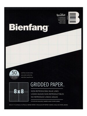 Grid printed with non-reproducible blue ink. Printed on high quality bond for minimal bleeding and feathering. Available in practical divisions, in popular sizes. 50 sheets of 20 lb. paper available in pads or loose sheets.