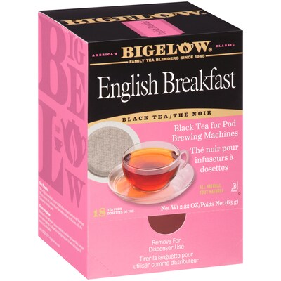 Bigelow English Breakfast Black Tea Pods. Full Caffeine Premium Black Tea Bold and Antioxidant-Rich Full Caffeine Black Tea in Pods.