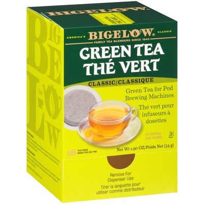 Bigelow Classic Green Tea Pods. Bigelow Classic Green Tea has the pure clean taste of green tea leaves harvested in high altitudes and gently processed for a smooth flavor that is neither harsh nor bitter. Perfect anytime.