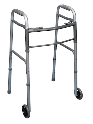 Bilt-Rite Mutual Double Button Walker is made of lightweight and durable aluminum that provides stability. It has 5" wheels that gives smooth mobility for older generation.