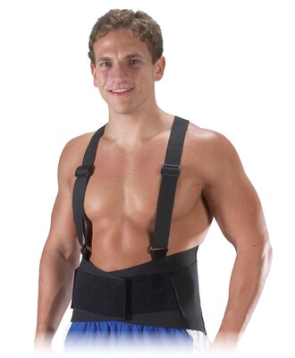 Medline Standard Back Support with Suspenders, Black, Medium, 30" - 34" L x 10" H, Each