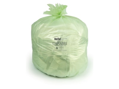 Keep plenty of trash bags on hand to ensure trash receptacles are emptied and supplied with fresh bags as often as needed. Along with having a smaller carbon footprint, these trash bags are made of sustainable materials. In addition to being BPI and ASTM D6400 certified, these durable BioTuf trash bags have up to a 64-gallon loading capacity and dependable lifting strength, with a thickness of 0.8 milliliters.