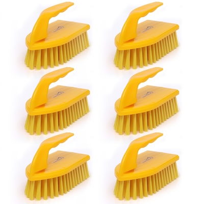 BISON LIFE 6" Polypropylene Iron Handle Scrub Brush, Yellow, 6/Pack (BPES-IRBH-PP-Y-6)