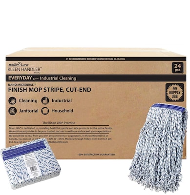 Bison Life Cut End Finish Mop is built for high-absorbency and strength with a premium blend, ideal for smooth, even floor finishes. Its innovative design releases liquid faster than traditional string mops, ensuring a faster and more efficient clean. The 1.25" universal headband fits most mop handles, making it suitable for various commercial and industrial environments. Durable and easy to use, it's perfect for floor finishing tasks where precision and speed matter.