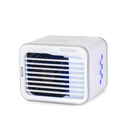 There's no need to break a sweat at the office with BLACK+DECKER's mini cooler and USB desktop fan. Portable dimensions of 7.5" x 6.25" x 5.9" and weighing just 1.79 lbs. With three fan speeds (Low, Medium, High) from 71.51 to 93.51 CFM, you can stay comfortable and breezy any time of day. Easily top fill the 0.5L water tank with water and watch it run up to 8 hours before it needs a refill. A removable cooling pad is included to help enhance the cooling of your air output. Simply pre-soak the pad under cold water and reinsert for best results. Our portable air cooler has an adjustable air vent to direct airflow where it's needed. Complete with non-skid grips on the bottom so you can secure your mini air humidifier cooler in place. The water tank features a water level indicator with LED feature.