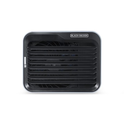 There's no need to break a sweat at the office with BLACK+DECKER'sEvaporative Cool Mist Tabletop Humidifier and fan. Portable dimensions of 7.5” x 6.25” x 5.9" and weighing just 1.79 lbs. With three fan speeds (Low, Medium, High) from 71.51 to 93.51 CFM, you can stay comfortable and breezy any time of day. Easily top fill the 0.5L water tank with water and watch it run up to 8 hours before it needs a refill. A removable cooling pad is included to help enhance the cooling of your air output. Simply pre-soak the pad under cold water and reinsert for best results. Our portable air cooler has an adjustable air vent to direct airflow where it’s needed. Complete with non-skid grips on the bottom so you can secure your mini air humidifier cooler in place. The water tank features a water level indicator with LED feature.