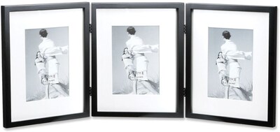Black Wood 8x10 Hinged Triple Picture Frame - Comes with Bevel Cut Mats for 5x7 Photos