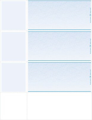 Blank Laser Wallet Check, 1 Part, 8 1/2" x 11", Blue, 500 Checks/Pack