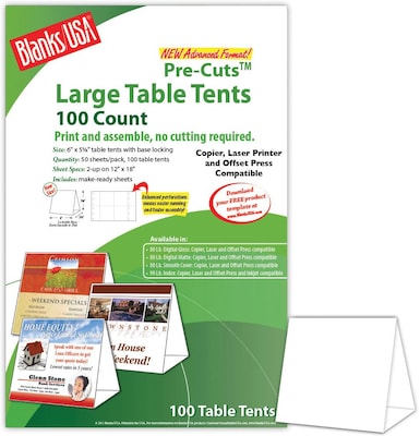 Blanks/USA® 80 lbs. Digital Table Tent is designed for printing on digital equipment.
