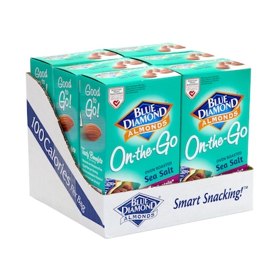 - A 42-Pack box of Blue Diamond Nuts oven roasted Sea Salt Almonds in easy to go pouches
