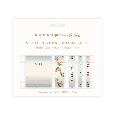 Blue Sky Bespoke Letterpress Assorted Washi Tape, 5 Rolls/Pack (155570)