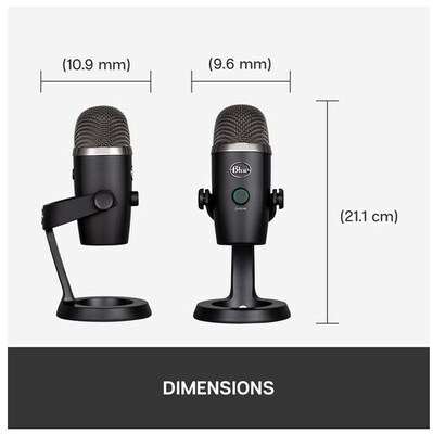 The blackout Blue Yeti Nano is a multi-pattern USB condenser microphone offering simple operability and high-quality audio capture for podcasters, YouTubers, vloggers, gamers, and voice-over artists in homes, project studios, and mobile recording setups. The mic works out of the box with Mac OS X and Windows systems via USB, and can even record directly to select iOS devices