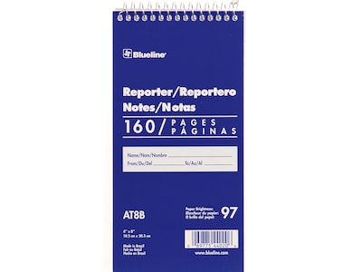 The Blueline Reporter notepad is great for taking notes in meetings, conferences, or class. Contains 160 white lined pages. Features a flexible cover with spiral binding to keep the pages secure.