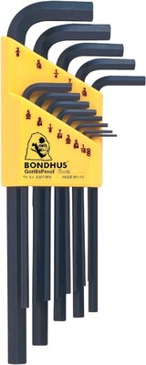 Bondhus® 13 Pieces long length hex key set has a size of 0.05 - 3/8" and is made of steel for durability. Hex key set is precision machined for easy use and superior fit.