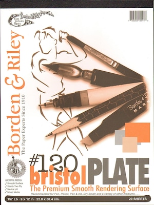 The premium rough rendering surface! Bristol is an artist quality, true two-ply pasted, drawing Bristol Board with a neutral pH for the best possible archival characteristics. Both sides of the sheet are identical and may be reversed for economy. Available in both a vellum and plate surface. The vellum (kid) surface is designed for dry wash, pencil, air brush, pastel, acrylics, brush and wash, lone and wash, or markers. The plate (smooth) surface is designed for pen, pencil, and markers. Both surfaces will handle erasure and reworking. Xerox compatible. 12 sheets per each tape-bound pad.