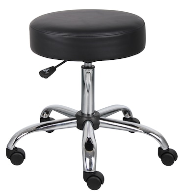 Talk to patients, write in charts, review test results, and more from the comfort of this stool in your medical office. The stool features an adjustable 6" seat height range to talk to patients or sit at a desk to write notes. The antimicrobial treated vinyl upholstery allows for easy cleaning and maintenance while offering long-lasting durability against everyday use. This Boss backless stool has a weight capacity of 275 pounds and uses dual-wheel casters to roll around easily on any floor surface.