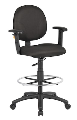Boss® Fabric Drafting Chair with Adjustable Arms & Footring; Black