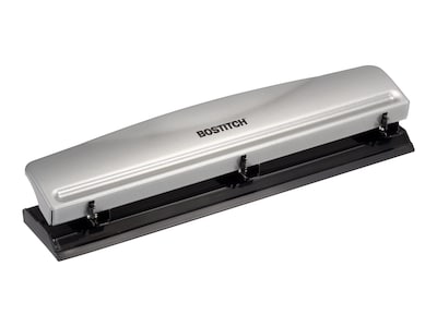 Bostitch Premium 3 Hole Punch, 12-Sheet Capacity, Silver color, all metal design and compact for long lasting durability and reliable performance.