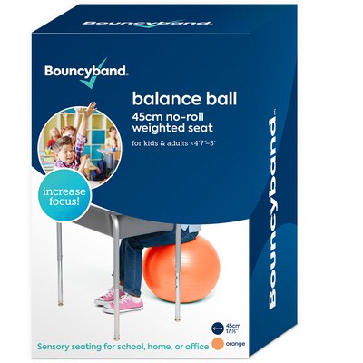 Non-roll away weighted balance ball offers a flexible chair for school and home enabling increased focus and improved performance. Bouncybands Balance Ball STAYS IN PLACE - Reduces fidgeting and increases concentration with an original weighting feature keeping it in place when not in use. INCREASE FOCUS - Keeps the mind engaged as the constant ball movement increases blood flow to the brain. STRESS RELIEF - Improves performance by providing an outlet for excess energy alleviating anxiety, stress and boredom. IMPROVES POSTURE - Builds core strength and a healthy posture.