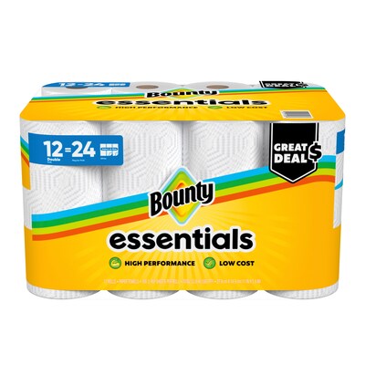 Every spill size is different and your paper towel size can be too! Pick up The Bounty Essentials Select-A-Size and choose the right sheet size for your family’s everyday needs. This pack of 12 double roll paper towels is great for large families. Waste less by selecting the perfect amount of paper towel for spills and messes, big and small.