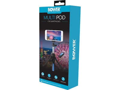 This professional Bower 6-in-1 multipod is designed for bloggers and photo/video enthusiasts. It can be used with Android and iOS smartphones, GoPro or other devices which have a 0.25" tripod mount. The 360-degree ball head allows you to choose any convenient angle for shooting, and the remote shutter with 2.4GHz Bluetooth works at distances up to 33". The product can extend from 7" to 36" for easy filming of large groups of people or large objects.
