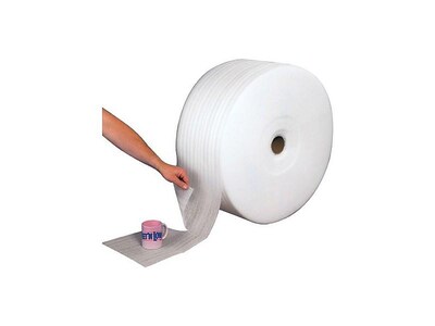 Ship items safely with this perforated air foam roll. With high-quality cushioning material, this foam roll can protect glass, ceramics, and other breakable materials, while the 350-foot length provides plenty for your shipping needs. This Partners UPSable foam roll is made with a strong white foam material, keeping your items secure while providing a professional look.