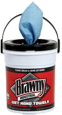 Brawny Industrial® Wet Hand Towels, 12 1/5" X 8 3/5", 1-Ply, Blue, 84/Pail, 6/Carton
