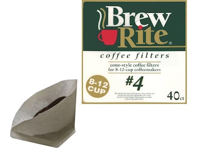 Make delicious coffee consistently with these coffee filters, which are available as a 40-pack. These filters hold enough coffee to make between eight and 12 cups. Constructed with a base core that is 2.06-inches wide, these Brew Rite coffee filters work in various types of coffee makers.