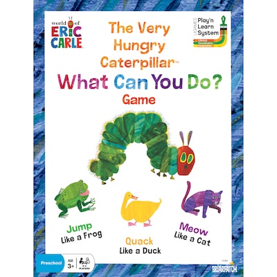 Kids rolls the soft die, then pick a card according to the color rolled. Each player takes a turn demonstrating an action, making a special sound, or playing a fun activity. Whether it's hopping like a frog, quacking like a duck, or tracing the letter C, little ones will earn a feeling of accomplishment with each activity! Cards feature the inspiring art of the World of Eric Carle. For 2-4 players, ages 3 and up. The World of Eric Carle encourages playful learning. With The Very Hungry Caterpillar as its centerpiece, the brand has touched the lives of children around the world for three generations through Eric Carle's timeless stories and vibrant artwork.