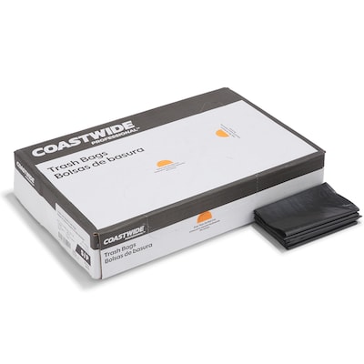 Keep workplaces free of office and food waste with these trash bags. The black coloring blocks refuse from sight, ideal for preserving privacy and disposing of sensitive materials. Low-density plastic resists stretching under the weight of heavy loads, and the tear-resistant design makes carrying sharp items easy. These Coastwide Professional™ black low-density trash bags fit in small garbage receptacles and hold up to 16 gallons of waste so you can go longer before emptying.