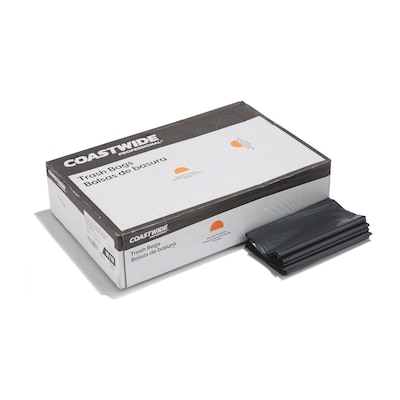 Keep your kitchen clean and free of clutter with these black trash bags. The super heavy-strength prime resin construction offers lasting durability and easily handles office and kitchen waste, and the 20-30 gallon size fits in most large trash receptacles. These Coastwide Professional™ 20-30 gallon reprocessed resin trash bags have star-sealed bottoms, stopping liquids and food waste from leaking out.