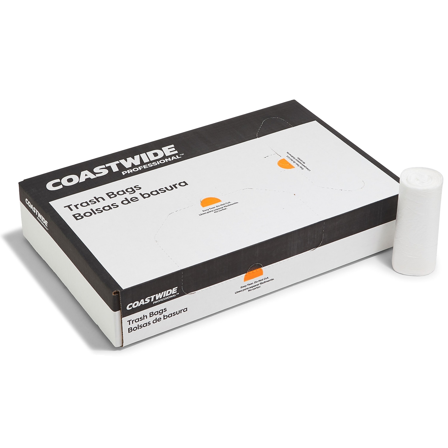 Store office waste inside these sturdy trash bags. A star-sealed bottom helps prevent leaks, and high-density material provides superior strength for easy lifting. The bags have a 10-gallon capacity, making them ideal for small rooms and kitchens that accumulate garbage quickly. This carton of Coastwide Professional™ trash bags comes packaged on rolls for simple storage and features vertical and horizontal openings for easy access.