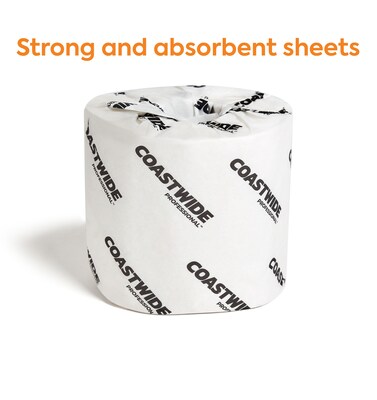 Coastwide Professional™ One-Ply Standard Bath Tissue is safe to use with sensitive skin and contains no dyes or fragrances. It's whitened without chlorine chemicals, septic safe and soft. Individually wrapped rolls for sanitary reasons prevent contamination and promote a cleaner restroom experience. Each roll includes 1000 sheets.