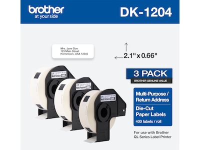 Brother DK-1204 Multi-Purpose Paper Labels, 2-1/10" x 2/3", Black on White, 400 Labels/Roll, 3 Rolls/Box (DK-12043PK)