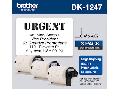 Brother DK-1247 Large Shipping Paper Labels, 6-4/10" x 4-7/100", Black on White, 180 Labels/Roll, 3 Rolls/Box (DK-12473PK)