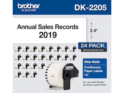 Brother DK-2205 Wide Width Continuous Paper Labels, 2-4/10" x 100', Black on White, 24 Rolls/Box (DK-220524PK)