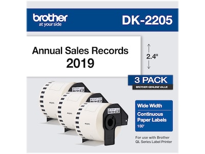 Brother DK-2205 Wide Width Continuous Paper Labels, 2-4/10" x 100', Black on White, 3 Rolls/Box (DK-22053PK)