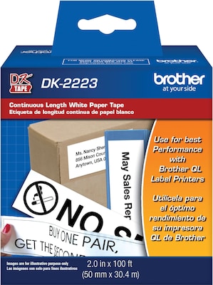 Brother DK-2223 Wide Width Continuous Paper Labels, 2" x 100', Black on White (DK-2223)